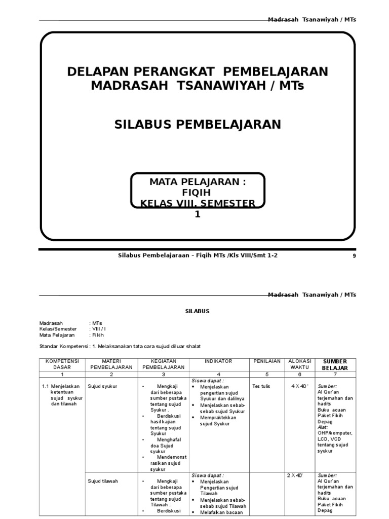 2. SILABUS Fiqih Kelas VIII MTs Semester 1, 2